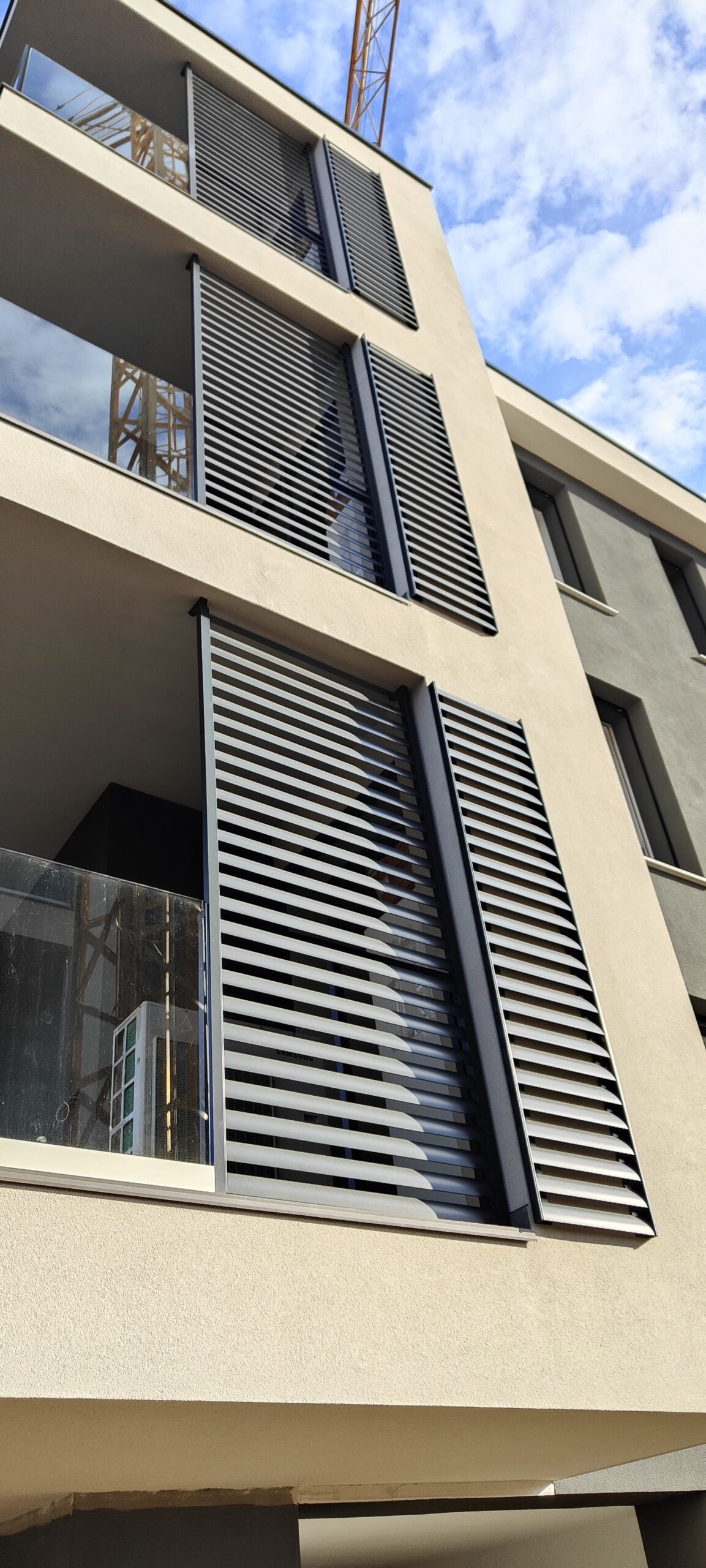 Frangisole modello ALL SUN 100, a pale orientabili o fisse, costituito da struttura in alluminio.