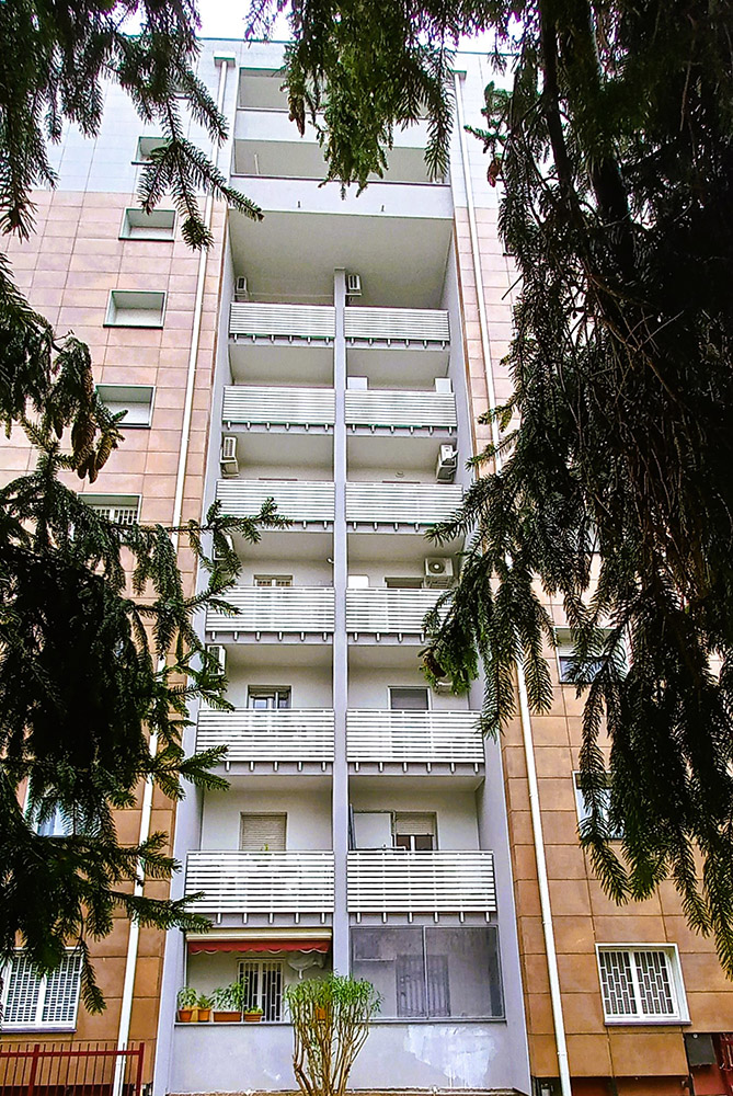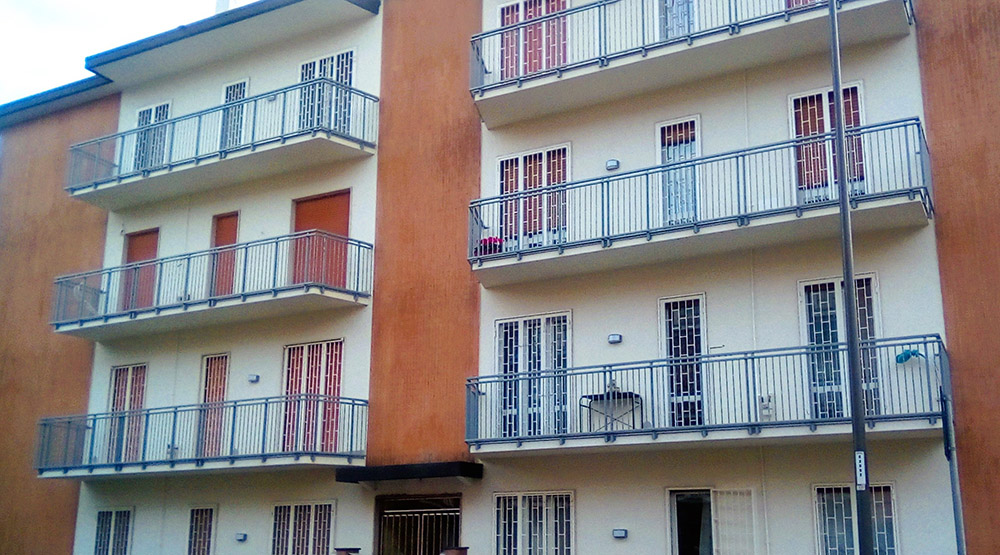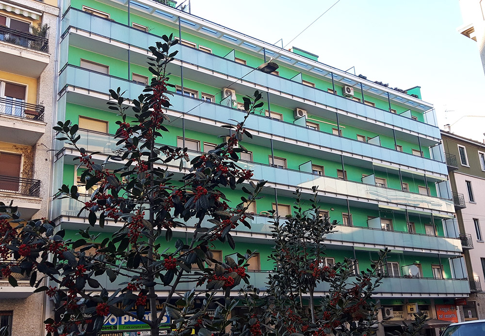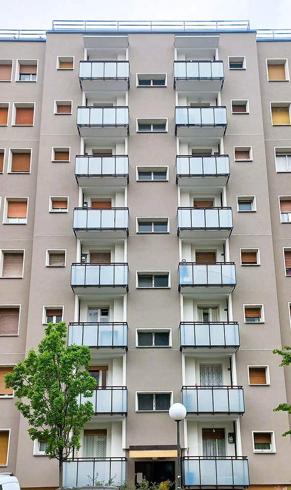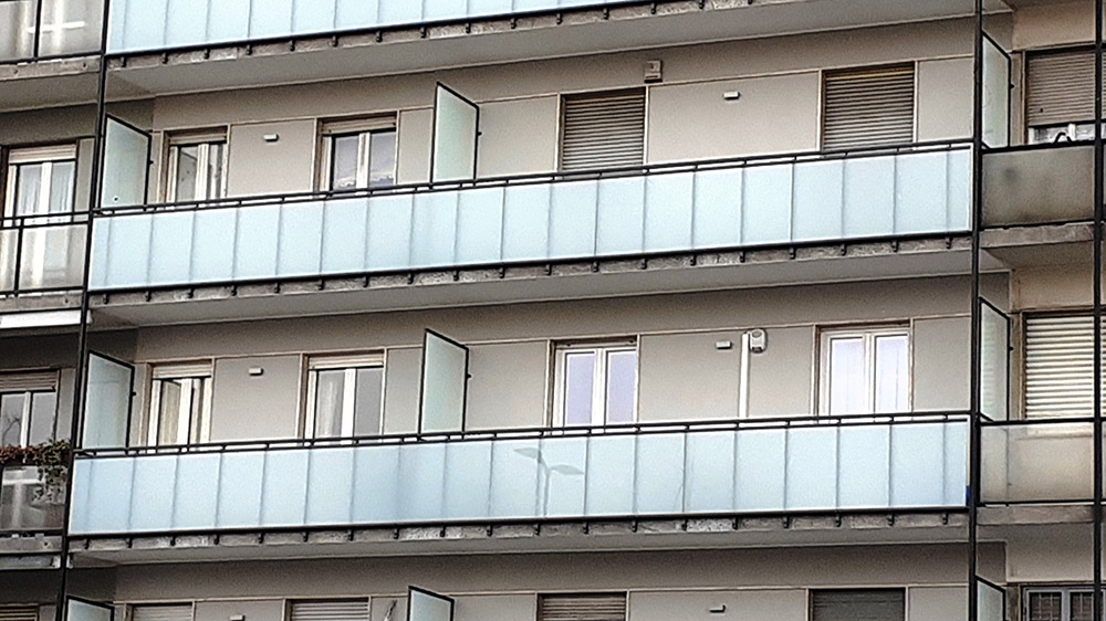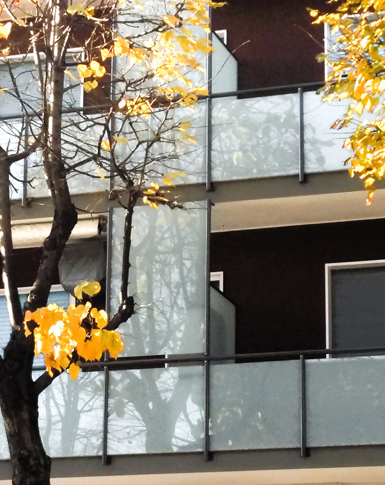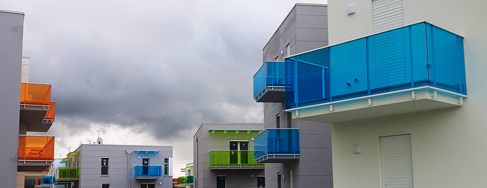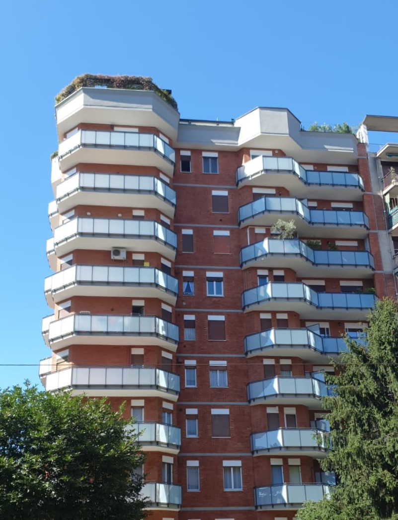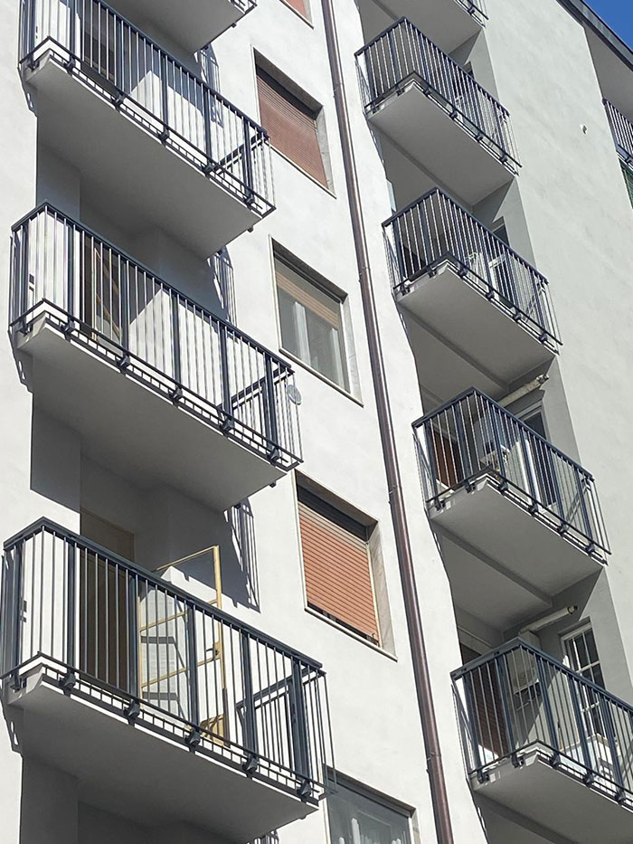 Parapetto modello ALL LUX 60 costituito da montanti verticali in profilato estruso di alluminio a sez. cilindrica, all’occorrenza internamente rinforzato con profilo in alluminio a disegno, completi di sede interna per l’alloggiamento della lastra in vetro e guarnizione di tenuta. Pannello di completamento in vetro. Colori a scelta da mazzetta RAL.