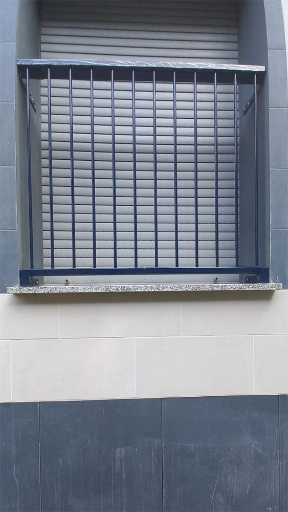 Pannello di completamento costituito da profili a L e bacchette verticali di alluminio. Colori a scelta da mazzetta RAL.